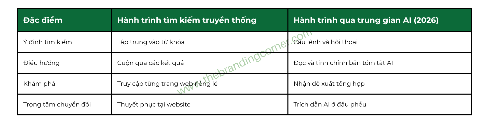 Điều này đã tạo ra cái gọi là khoảng cách trung gian. Công cụ AI giờ đây đóng vai trò như một nhà phân tích thay vì một thủ thư, đưa ra kết luận tổng hợp thay vì chỉ đưa danh sách các nguồn. Mặc dù điều này dẫn đến lưu lượng truy cập tổng thể thấp hơn, nhưng những người dùng vượt qua được khoảng cách này lại có giá trị gấp 4,4 lần so với lưu lượng truy cập tự nhiên truyền thống. Bởi vào thời điểm họ click vào website, AI đã thực hiện xong “phần việc nặng nhọc” là thẩm định chuyên môn của bạn rồi